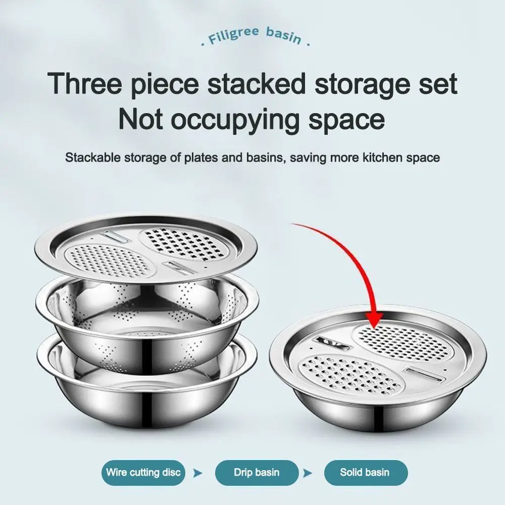 3-in-1 Kitchen Basin Set (3pcs) – Wash, Drain & Grate Bowl with Strainer